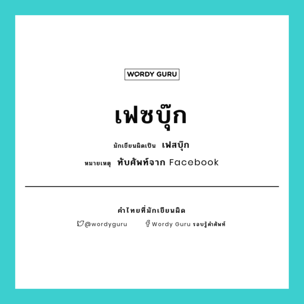Wordy Guru No Twitter เฟซบ ก ม กเข ยนผ ดเป น เฟสบ ก หมายเหต ท คำไทยท ม กเข ยนผ ด Https T Co Ibdwurugmuเฟซบ ก